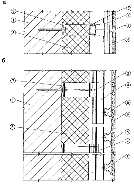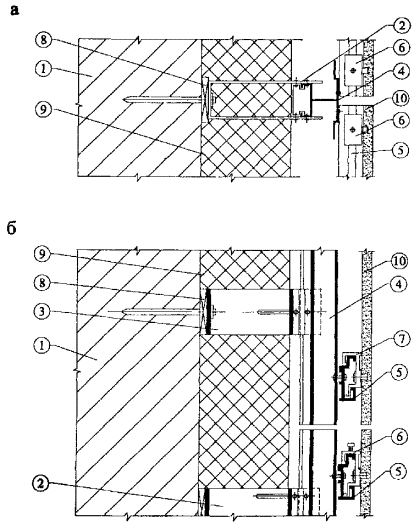 вертикальным профилям) несущего каркаса. При этом между облицовочным слоем и слоем утеплителя устраивается вентилируемый воздушный зазор, с помощью которого влага, накапливающаяся в утеплителе,