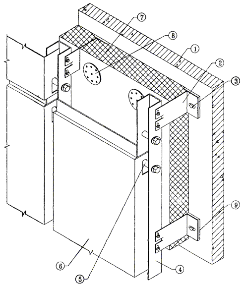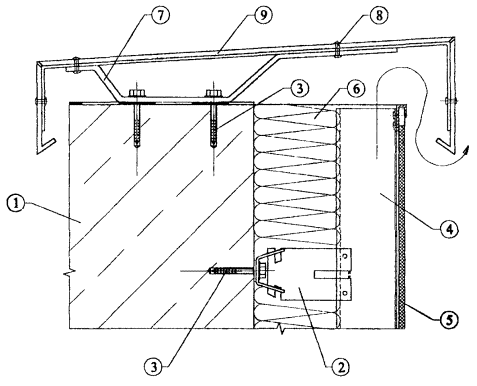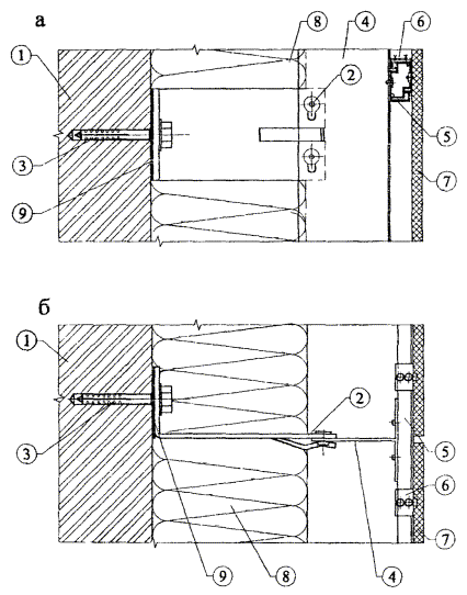 элементам (в основном к вертикальным профилям) несущего каркаса. При этом между