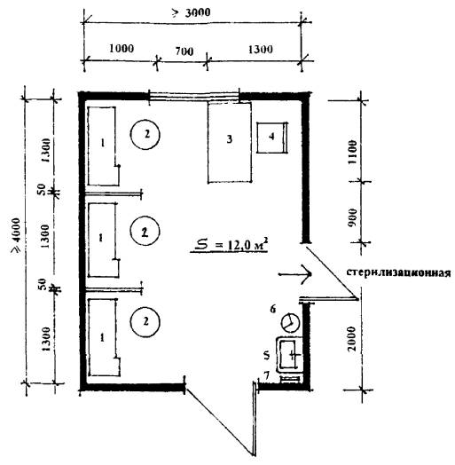 процедурной медсестры 4. Стул 5. Умывальник 6. Бачок для
