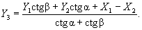 YP = (XP - XA)tg(AP) + YA; YP = (XP - XC)tg(CP) + YC.