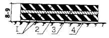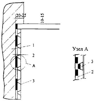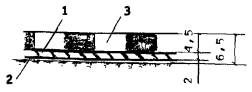 мастики 8-9 кг/м2. При необходимости (см. п. 3.1.5) применяют грунтовочный слой. 1 - слой мастики; 2 - грунтовка; 3 - армирующий