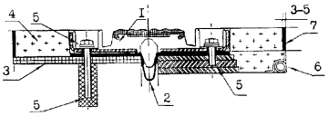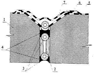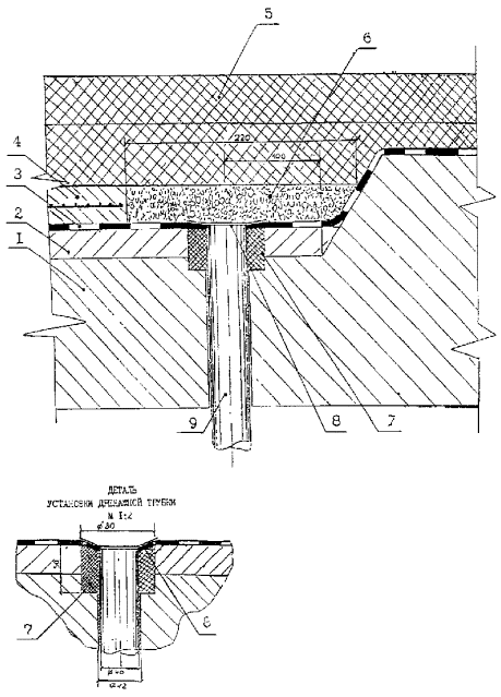 бетоне, не допускается. 1 - плита пролетного строения; 2 - выравнивающий слой; 3 - гидроизоляция; 4 - арматурная сетка защитного слоя; 5 - бетонный защитный слой; 6 - двухслойное
