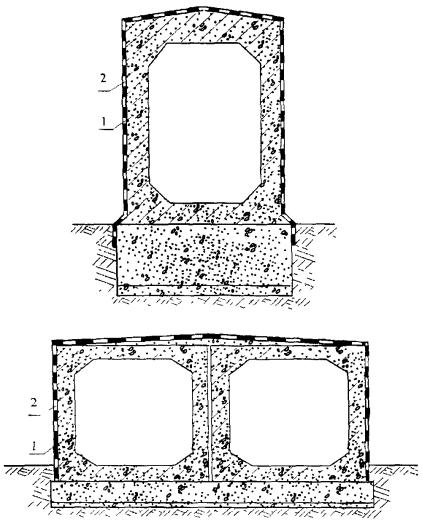 вертикальных поверхностях устоев, засыпаемых землей, фундаментах опор при