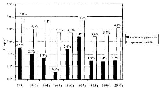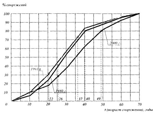 до 55 лет - 95 % сооружений. В России к началу 90-х годов
