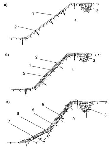 - биологические типы конструкций укреплений, предназначенные для защиты откосов
