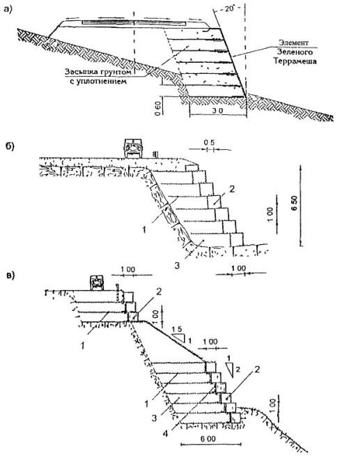 использованием геотекстиля, сборные железобетонные решетки, пневмонабрызг,