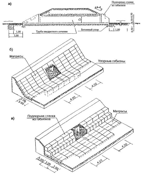путепроводы, малые водоотводные, фильтрующие и другие). Применение габионных