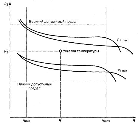 расхода минимальной и максимальной температурных уставок и соответствующие 75 %