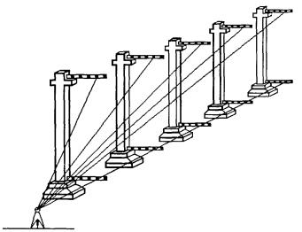 устанавливаются по отвесу и крепятся с помощью просечных клещей с последующим