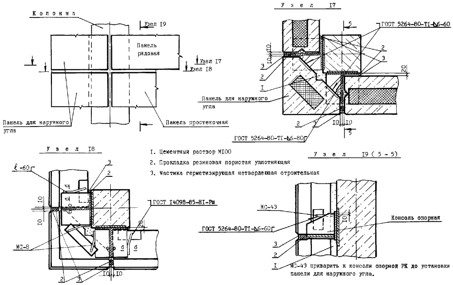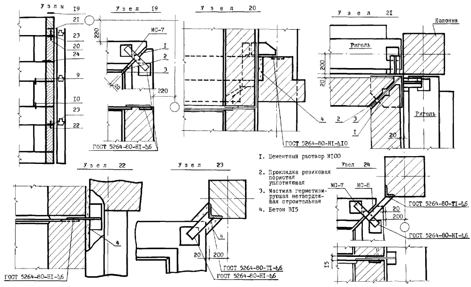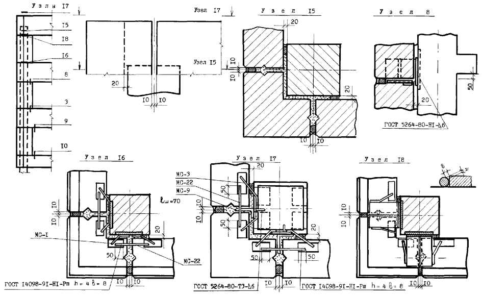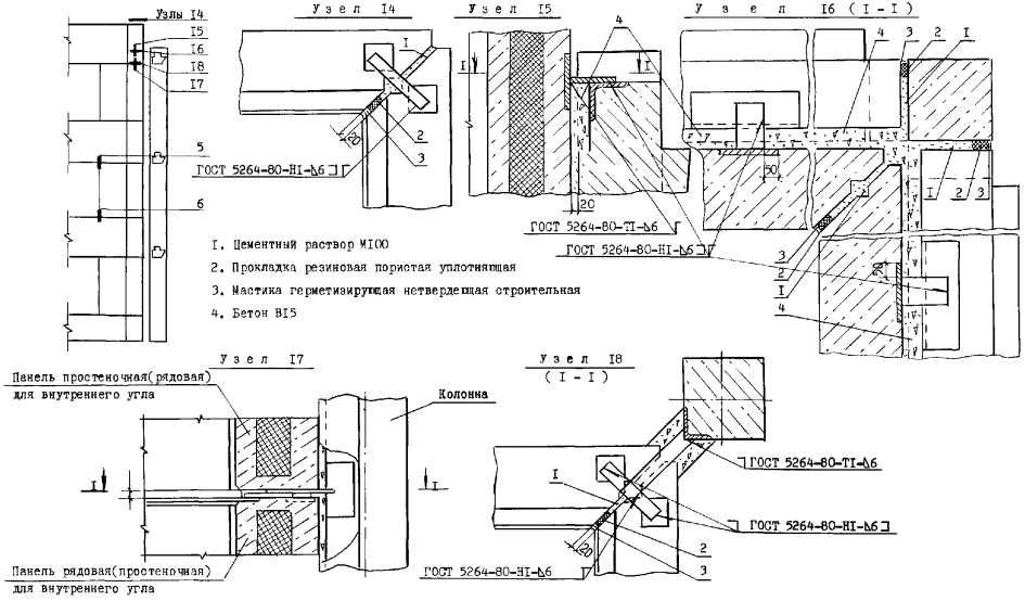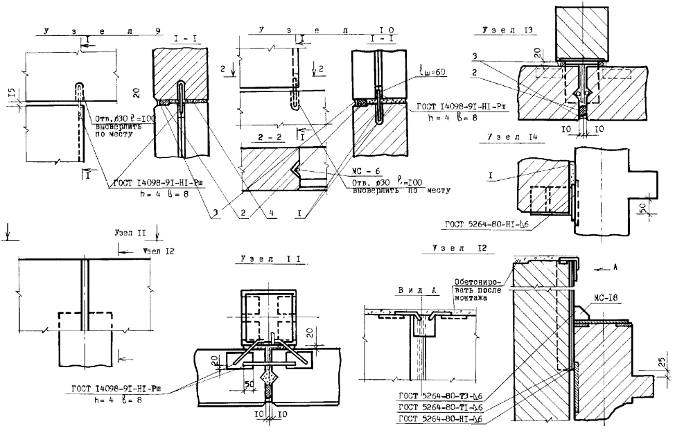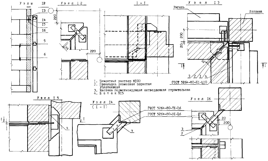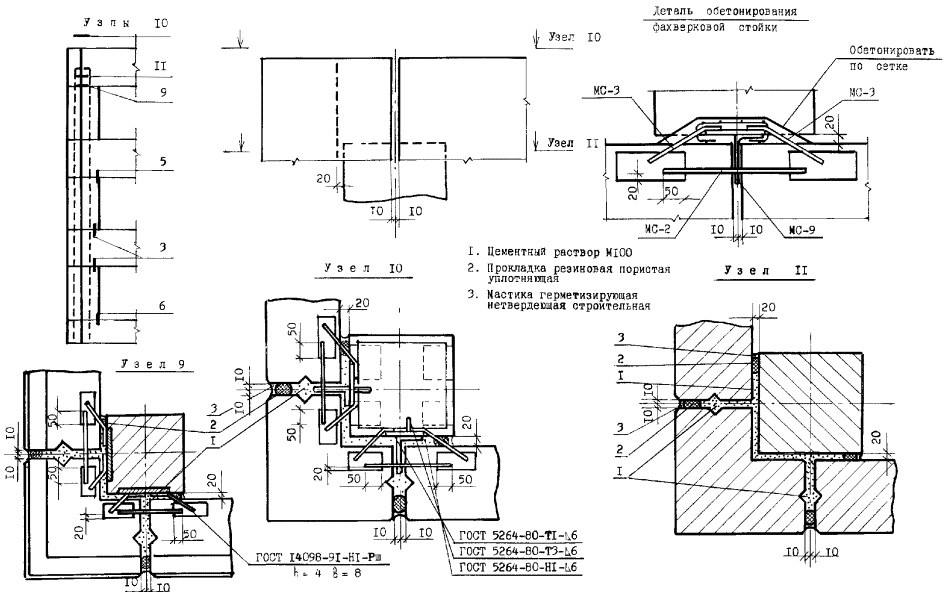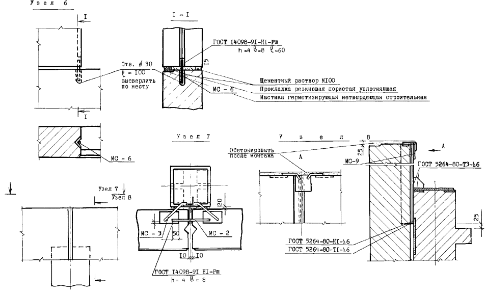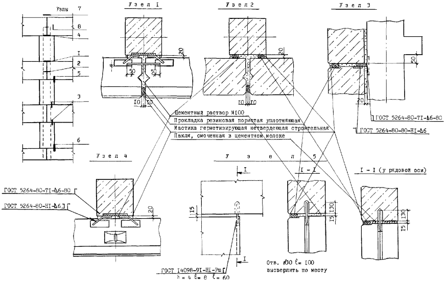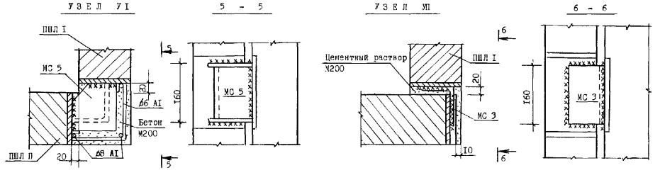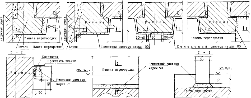 Узлы перегородок типа ПЦМ-1м (ПЦМ-1)