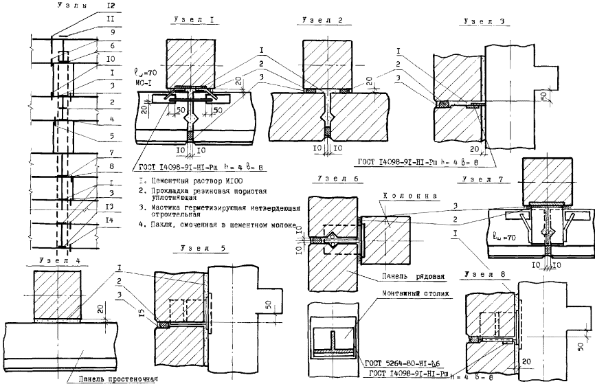 Узлы перегородок типа ПЦД-1м (ПЦД-1)