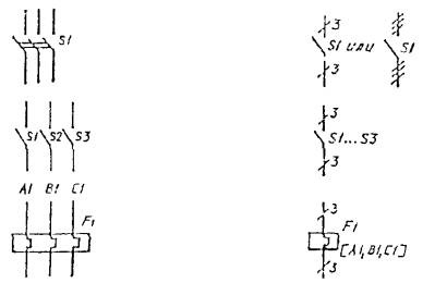 многоконтактного реле). Выводы (контакты) неиспользованных элементов (частей) изображают короче, чем выводы
