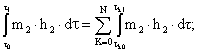 прохождения конденсата по конденсатопроводу, тогда интегралы, содержащие члены m2h2, представляют в виде суммы