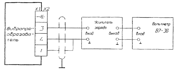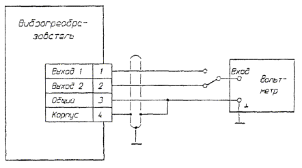 вибропреобразователь соединительным кабелем ко входу осциллографа в