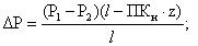 Длина списываемого участка, X = l = Перепад давления определяем по