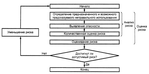 Допустимый риск достигают с помощью итеративного процесса оценки риска и