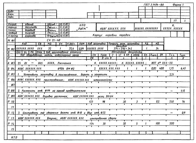 ОФОРМЛЕНИЕ КТП НА ТЕХНОЛОГИЧЕСКИЙ ПРОЦЕСС,