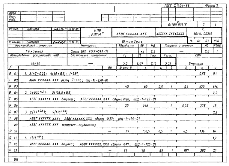 РЕЗАНИЕМ НА ОДНОШПИНДЕЛЬНЫХ АВТОМАТАХ, ПОЛУЧЕННАЯ С АЦПУ ЭВМ (НА 128 ЗНАКОВ)