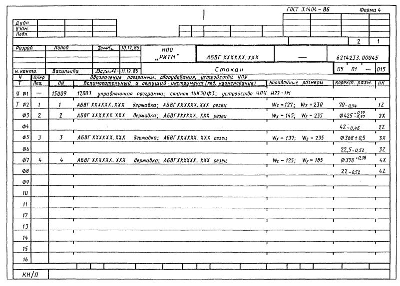 последовательности: - приспособления; - вспомогательный инструмент; - режущий инструмент; - средства измерения. 1.11.2. Запись информации следует выполнять по всей длине строки с