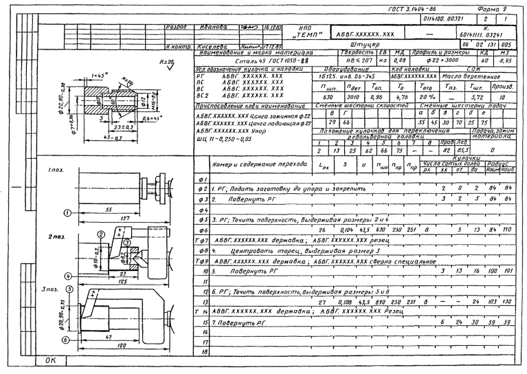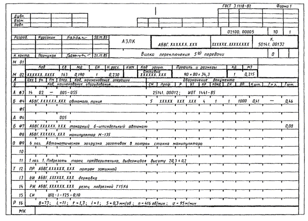 операционной карты (ОК) обработки резанием на одношпиндельных автоматах формы 8 САПР приведены в приложении 2. 1.14. Рекомендации по выбору документов применительно к видам