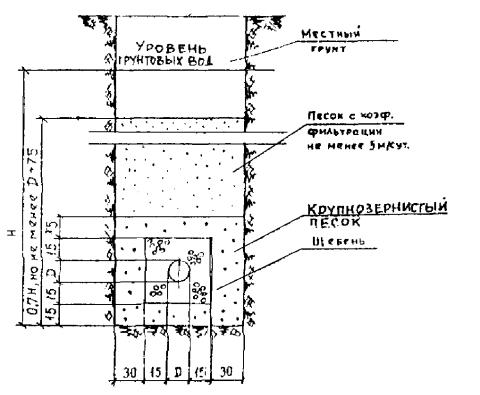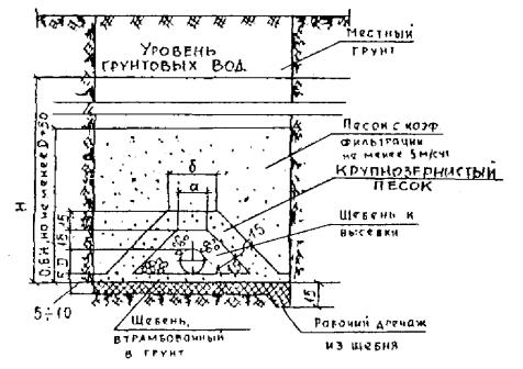 совершенного типа должен иметь дренирующую обсыпку сверху и с боков (см. рис. 1). Дренаж несовершенного типа закладывается выше водоупора. Грунтовые
