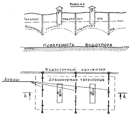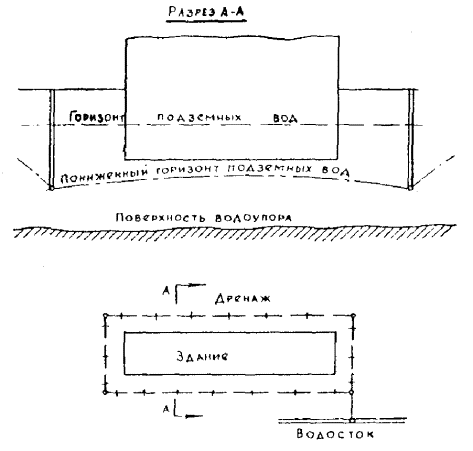 общего понижения уровня подземных вод должны предусматриваться местные дренажи