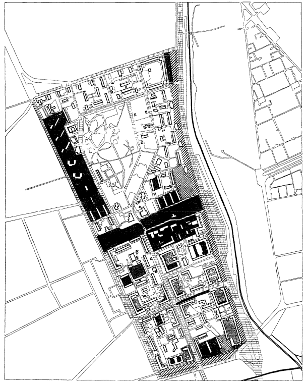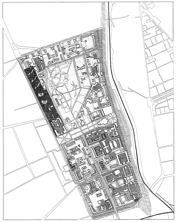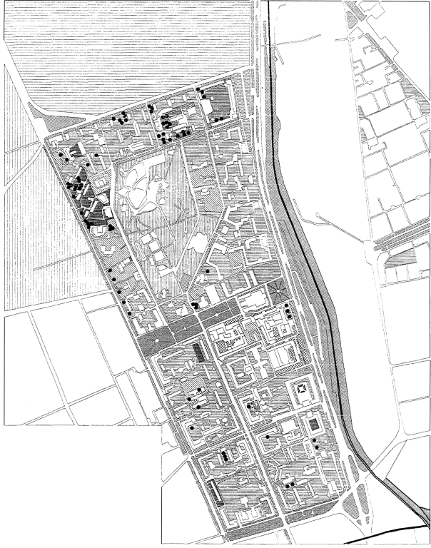 несколько комплексных жилых районов как в центральной и срединной частях