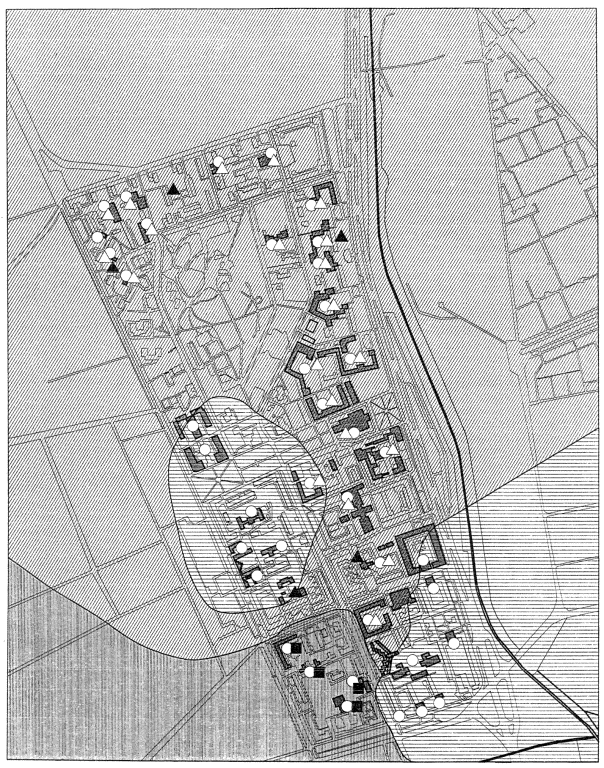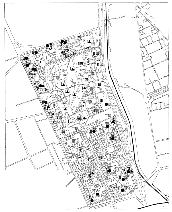 более 25 % территории, а участки или кварталы других типов менее 25 % каждый. Размещение