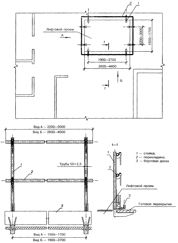лифтовых шахт, монтажных проемов, котлованов и траншей, других мест перепадов