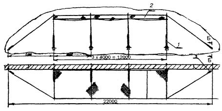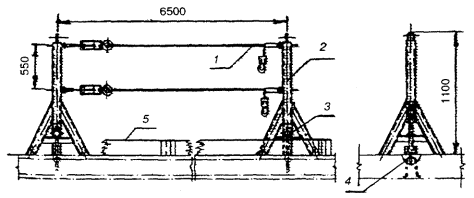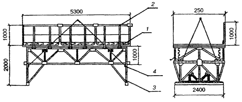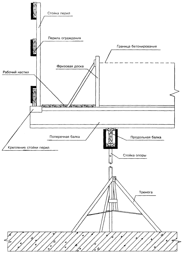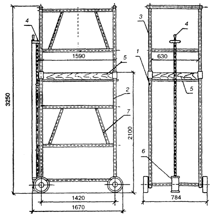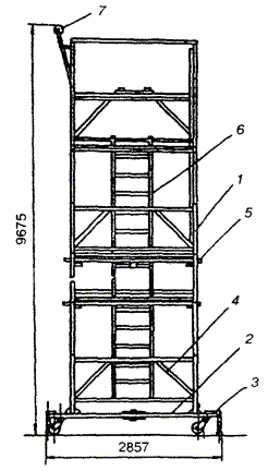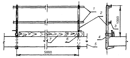 - настил; 5 - ферма; 6 - опора; 7 - подмости;