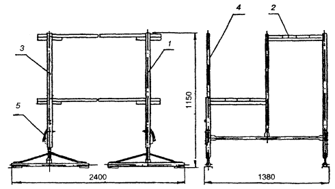 Каждая рама имеет высоту 2 м. С целью устойчивости рамы связываются между
