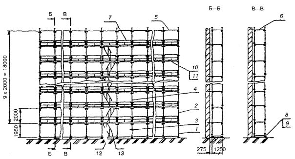 устойчивости связываются между собой диагональными стяжками. Крепление лесов