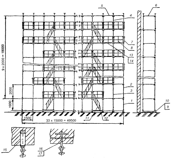 лесов в плане обеспечивается установкой диагональных раскосов. Леса оборудованы заземлением. ТЕХНИЧЕСКАЯ