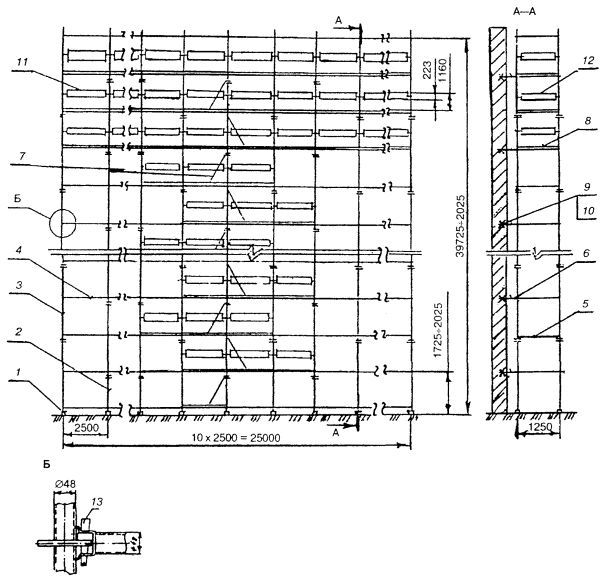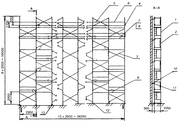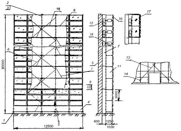 12 - навесная площадка; 13 - распорная диагональ; 14 -