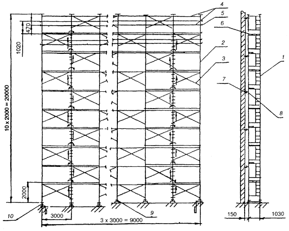 представляют собой леса строительные приставные рамные высотой 20 м,