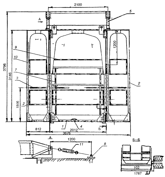 8 - анкер; 9 и 10 - ограждения; 11 - устройство