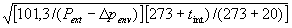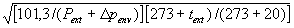 101,3 кПа, tint = 20 °С = 293 К и определяют объемный расход воздуха Qenv, м3/ч, через ограждающие конструкции по