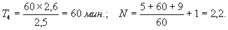 - продолжительность загрузки автобетоносмесителя, мин.; Т2 - время прохождения автобетоносмесителя в пути от