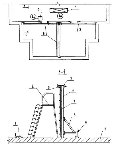 площадка для приёма бетона; 6 - автобетоносмеситель; 7 - бадья для бетона; 8 -