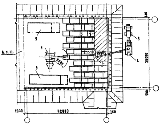 элементов опалубки; 4 - стеллажи для сборки панелей, 5 - склад арматурных