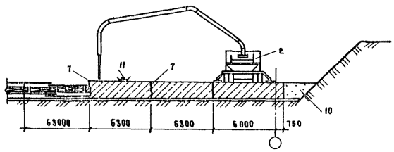 бровки котлована, на последующих захватках - с забетонированных ранее захваток