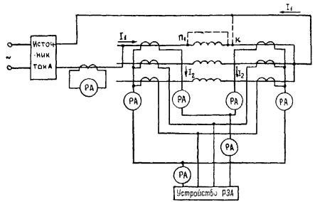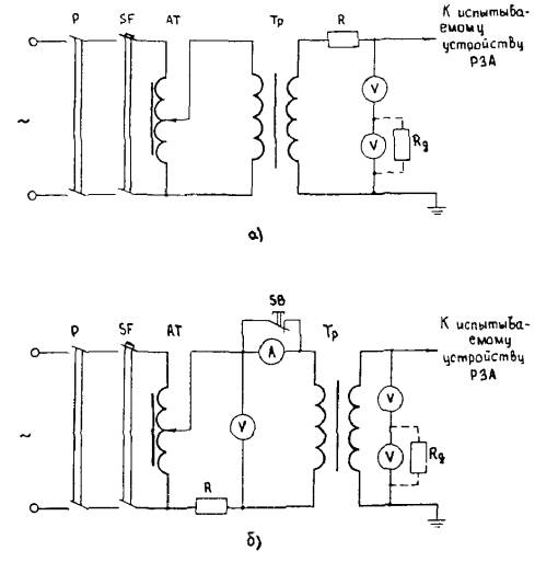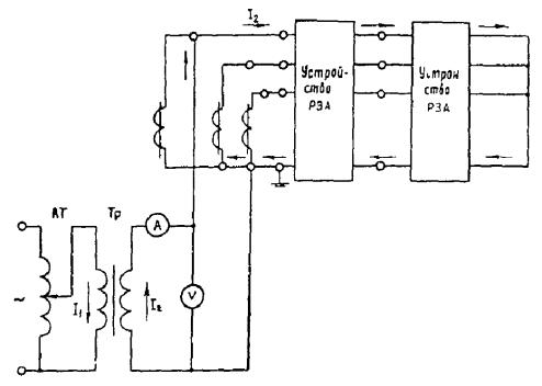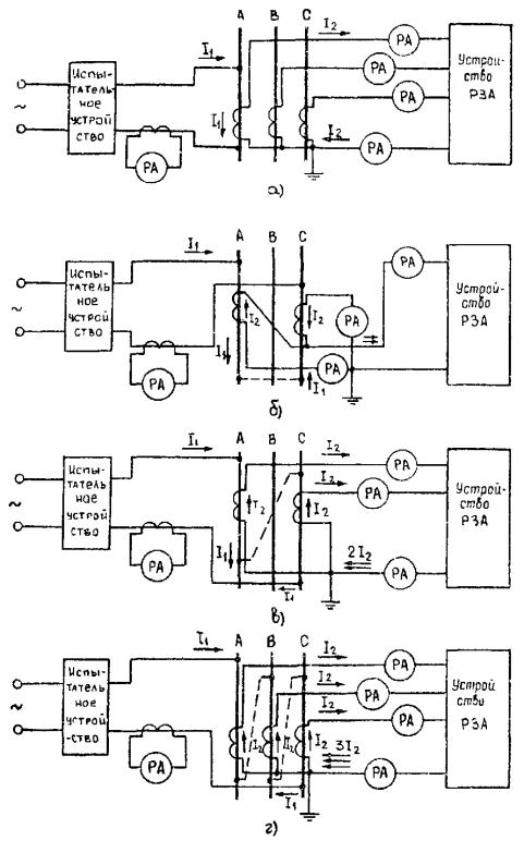 тока и напряжения к устройству при проверке режимов ОАПВ. При этом в различных режимах