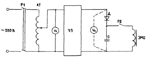 регулируемого переменного напряжения и тока с выводов ~U; -U - получение регулируемых выпрямленных значений напряжения и тока с выводов ~U; п) АМПЕРВОЛЬТМЕТР, S6 -