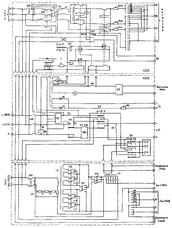 трансформатора тока блока К514; р) S4, S5 - переключатели пределов шкалы ампервольтметра