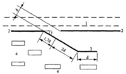 расположен под углом примерно 45° к оси основной части экрана и иметь длину Lбок.пр. = 100 м. Левый отгон должен быть