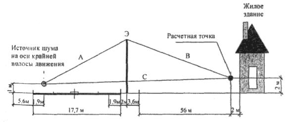 звука на селитебной территории и определения требуемой эффективности экранов с