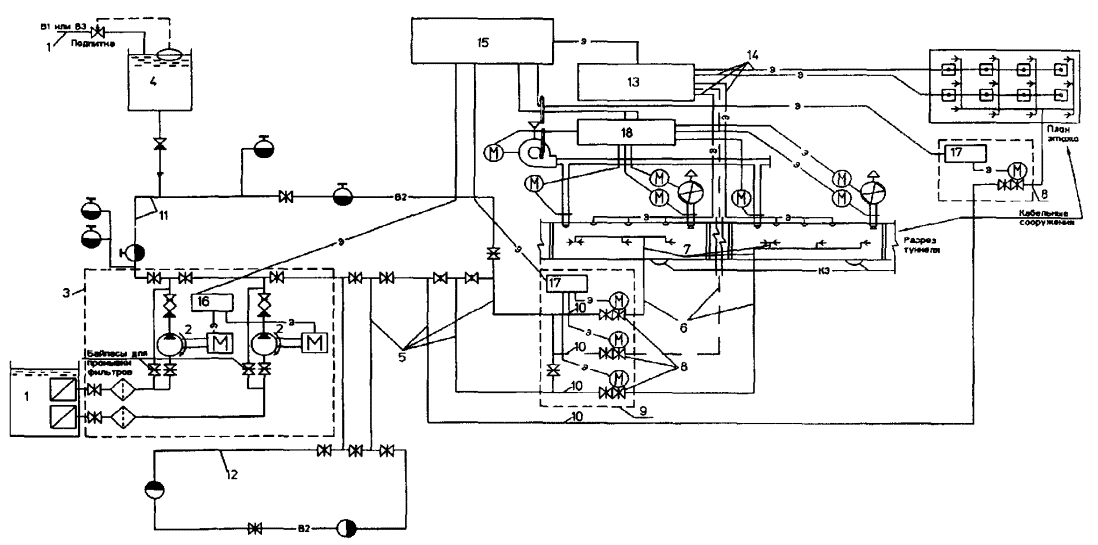 управления и сигнализации; 16 – управление пожарными насосами; 17 – управление