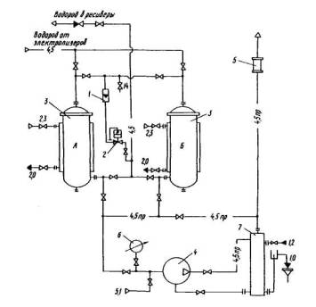 5 - огнепреградитель; 6 - регулятор-промыватель водорода; 7 -
