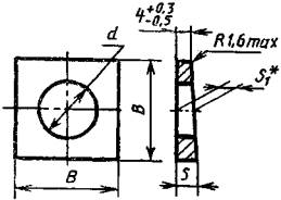 10906-78 (Измененная редакция, Изм. № 1, 2). 1.2. Теоретическая масса шайб приведена в приложении 1. (Введен дополнительно, Изм. № 1). 2. ТЕХНИЧЕСКИЕ ТРЕБОВАНИЯ2.1. Шайбы должны изготовляться из прокатной стали по ГОСТ 5157-83. Допускается изготовлять шайбы из полосовой и листовой стали. 2.2. Допуск симметричности квадрата относительно оси отверстия в диаметральном выражении 2IT14 (определять по размеру В). 2.1; 2.2. (Измененная редакция, Изм. № 1,2). 2.3. Технические требования - по ГОСТ 18123-82. (Измененная редакция,