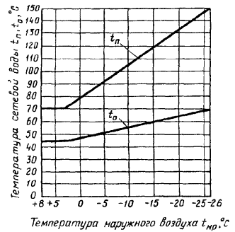 температуры сетевой воды (по температурному графику), °С, в трубопроводе |